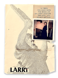 While with PA, I paraphrased Charleston Heston, who portrayed Moses in the movie "The Ten Commandments." Whenever I sensed skepticism aimed in my direction, I would let loose the phrase: "TEN TIMES you have seen the miracles of Larry Graham, and STILL, you do not BELIEVE!" The Pharaoh of Egypt, played by Yule Brener from the same movie, was another one I quoted when I felt strongly about my decision: "So let it be said! So let it be done! So let it be written!" I know I was mental! There was something about the film that stuck with me when I was a kid. My fellow artist found this drawing of Moses in a magazine and added the text with a picture of me at a costume party dressed as who else but Moses. When my therapist was informed about this behavior, he immediately demanded that I be restrained and institutionalized. ❦