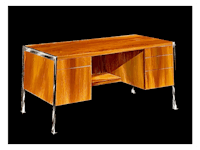 The desk was created in much the same way as the dashboard. Each desk surface was masked off and painted with long strokes by a fan brush, creating wood streaks and even a wood-like texture. ❦