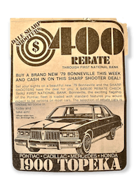 An ABOMINATION! It's the worst ad ever created by a primate! This may be the first ad I designed in my professional career at The Professional Advertiser, also known as PA, in the late 70s in Topeka.