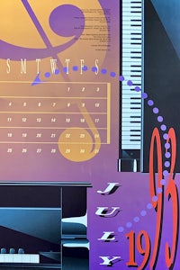 Each month, as a self-promotional tool, Admark created a calendar for clients, prospects, and employees' families. Every employee had the opportunity to develop a calendar concept. It was up to the designer/illustrator to bring their idea to life and make it into an exciting and pleasing calendar. Mona’s concept reflects her passion for music and her love for the piano. Credits were listed on every calendar of everyone involved, along with the name of the paper and printing company. I designed and illustrated this calendar on the computer in an app called FreeHand. This vector-based program was popular with designers for a time but soon would be replaced with Adobe Illustrator. ↓