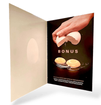 When the card was opened, it revealed the egg cracked open, releasing a double yolk with the Callahan Creek logo reflecting on both of them. ❦