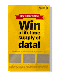 Sprint direct mail concept in development. It is designed to resemble a lottery scratch-off ticket. Sprint was a reasonably large client that kept us busy throughout the years. Most Sprint projects were ads for the Internet, along with sporadic print material. ❦