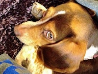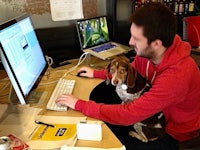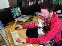 You could always find our super energetic office dog, Birdie, laying on her giant bean bag right next to my desk. ↓
