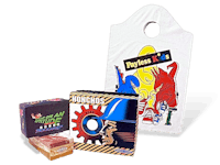 The black Trekkers shoe box with the skydiver and the white Payless Kids bag with the dinosaurs tying their shoes on a park bench was a lot of fun to design and illustrate. But this wasn't the first time I encountered dinosaurs, drawing them, that is. I twice had the opportunity to illustrate dinosaurs. The two Meal-O-Suarous kids' meal cartons were illustrated in a semi-realistic style: a Stegosaurus and a Tyrannosaurus rex. The four DinoTyke’s kids' meal boxes were illustrated in a colorful cartoon style. ❦