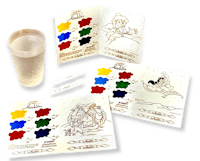 Watercolor cards for the Targeteers to paint the characters. I was surprised they did a pretty good job of painting. All you needed was water. ↓