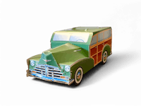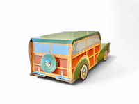 One of my faves is the old classic Woody carton. It featured wooden paneling on the exterior, where it got its nickname "Woody.” Due to its unique styling and limited production, the 1947 Chevrolet Woody is considered a collector's item today. The box is a little complicated to assemble, but it looks cool on the shelf. ↓