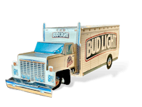 Bud Light promotional piece. They were placed on the tables in beer establishments. Budweiser was thrilled with the end product. Not only did I illustrate the box, but I also solved the structural problem of how to make the front fenders. Is it Happy Hour yet?↓