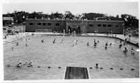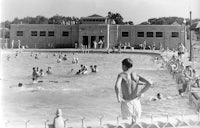 When I was a kid, the swimming pool’s concession stand was on the building’s roof. The old building was constructed of stone and concrete. There were stairs on both sides of the main entrance. From the roof, you could see the entire pool while you were eating snacks.