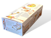 This kid's meal box was explicitly designed and illustrated for “Quincy’s,” a steakhouse restaurant. These brownish, elongated creatures marching in a parade are yeast rolls, that’s right, yeast rolls! Quincy’s were known for their yeast rolls. What a concept, a parade with marching yeast rolls! By the way, this was not my first encounter with yeast rolls. I once was honored by accepting the assignment of designing a logo for a prestigious food product called Grandma’s Yeast Rolls; thank you very much! The box was illustrated on the computer shortly after it debuted in a now obsolete app called Freehand.