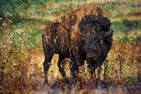 A Photostration is a hybrid art style that combines photography with other artistic elements, such as text, paintings, drawings, or other media, to create a layered or textured composition that goes beyond traditional photography, resulting in unique works.